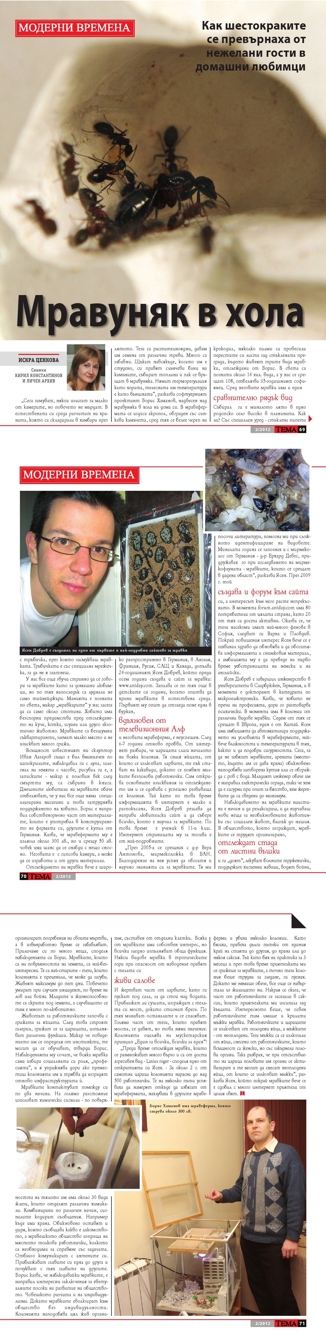 Article in the magazine TEMA by Iskra Tsenkova, 14/01/2012